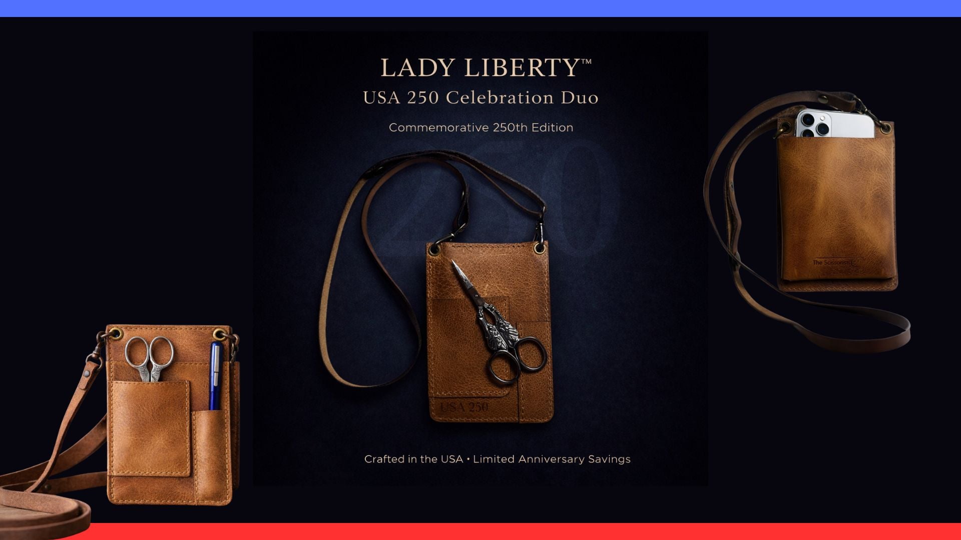 USA 250 Celebration Duo - Lady Liberty Scissors in a Stitcher's Companion
